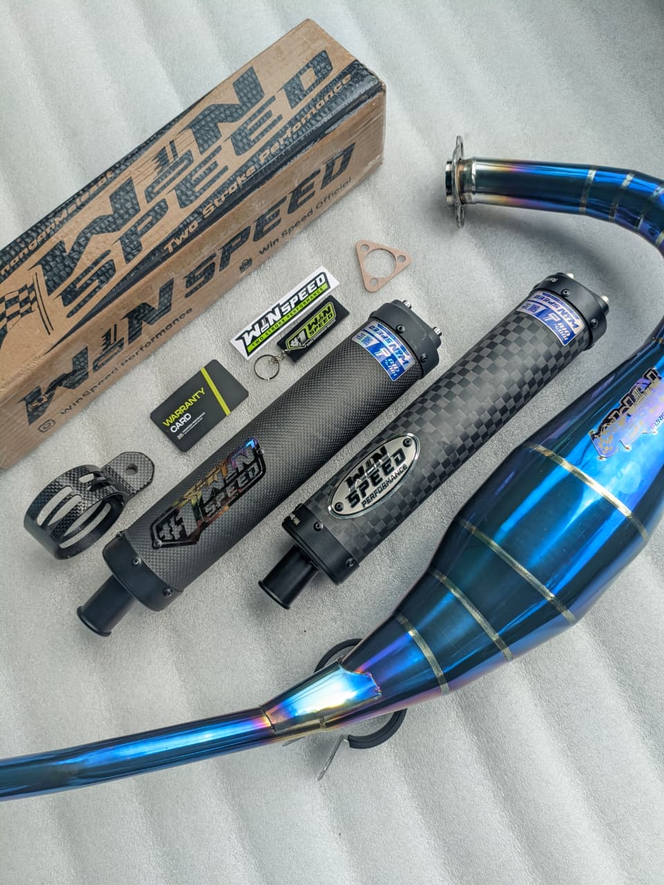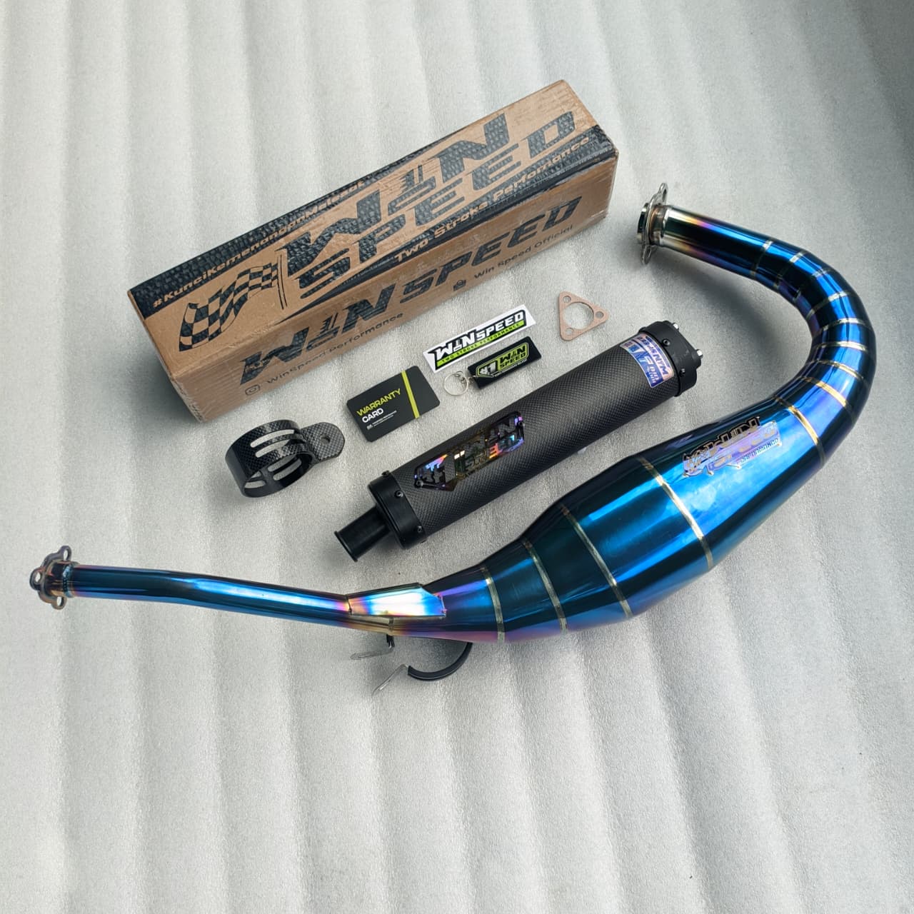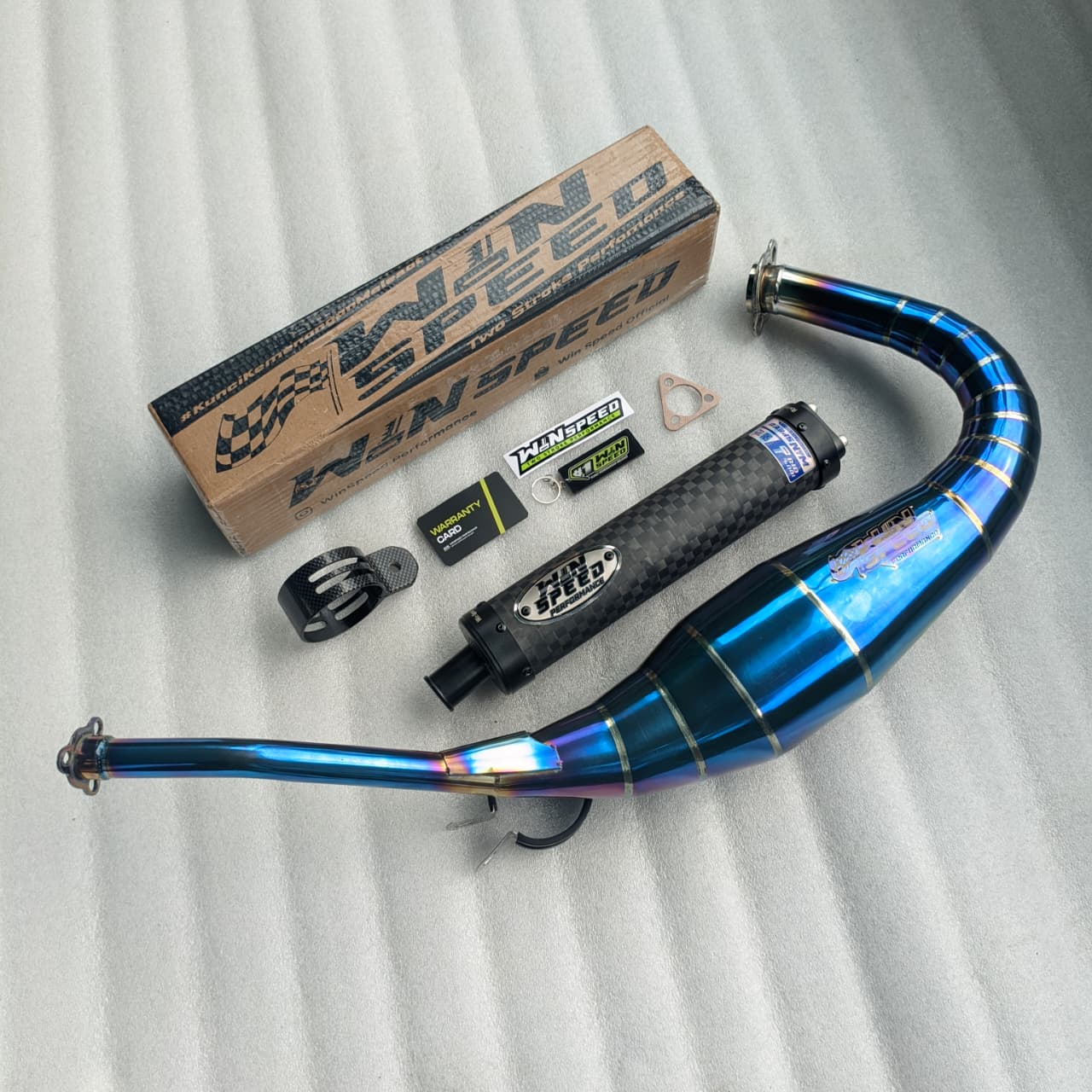 Fullsystem Silencer Carbon Plain Doff & Catur Glossy, Exhaust Chamber Stainless Full Blue Repsol undercarriage model , YAMAHA RX KING|RXS|RXZ