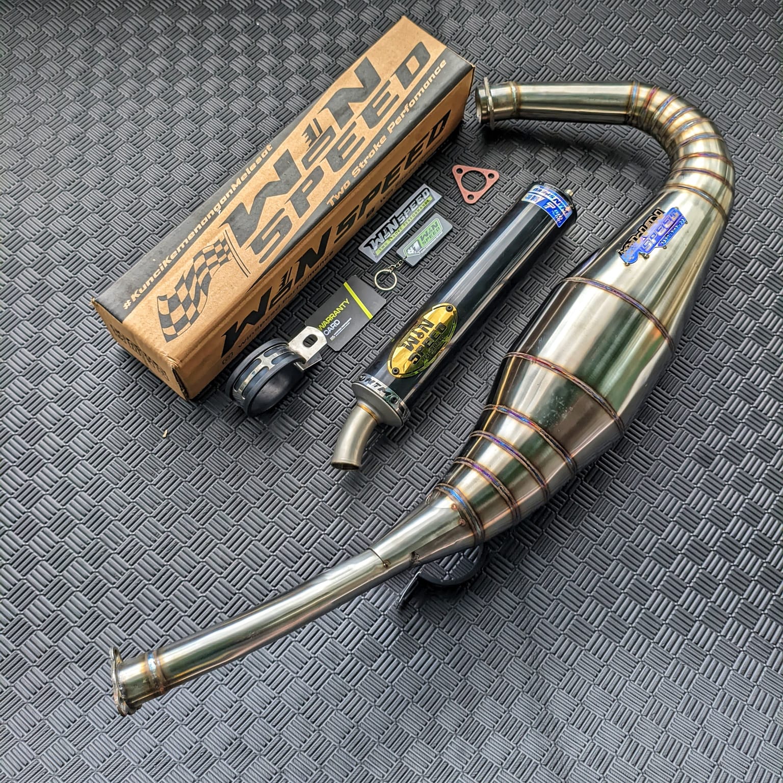 Winspeed Performance Kawasaki KR150, KRR150, KRR150ZX, Serpico exhaust chamber is just what is needed to unleash the power suffocated by the stock system. Just by changing the exhaust system huge gains can be made and it is designed for easy fitting with no repositioning of bodywork or rejetting necessary.