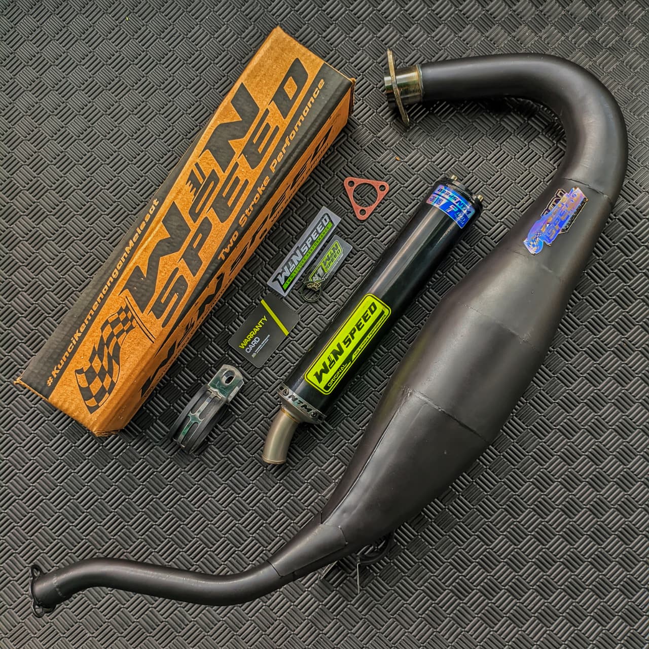 Winspeed Performance Kawasaki KR150, KRR150, KRR150ZX, Serpico exhaust chamber is just what is needed to unleash the power suffocated by the stock system. Just by changing the exhaust system huge gains can be made and it is designed for easy fitting with no repositioning of bodywork or rejetting necessary.