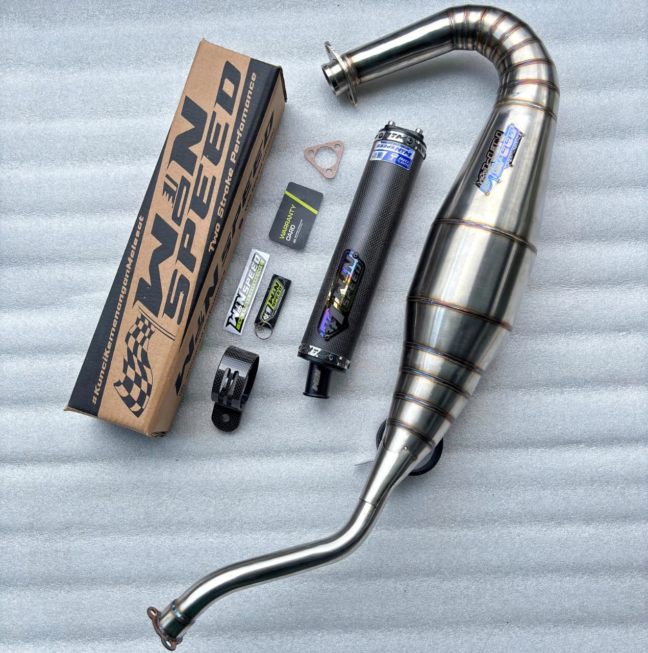 Winspeed Performance Kawasaki KR150, KRR150, KRR150ZX, Serpico exhaust chamber is just what is needed to unleash the power suffocated by the stock system. Just by changing the exhaust system huge gains can be made and it is designed for easy fitting with no repositioning of bodywork or rejetting necessary.