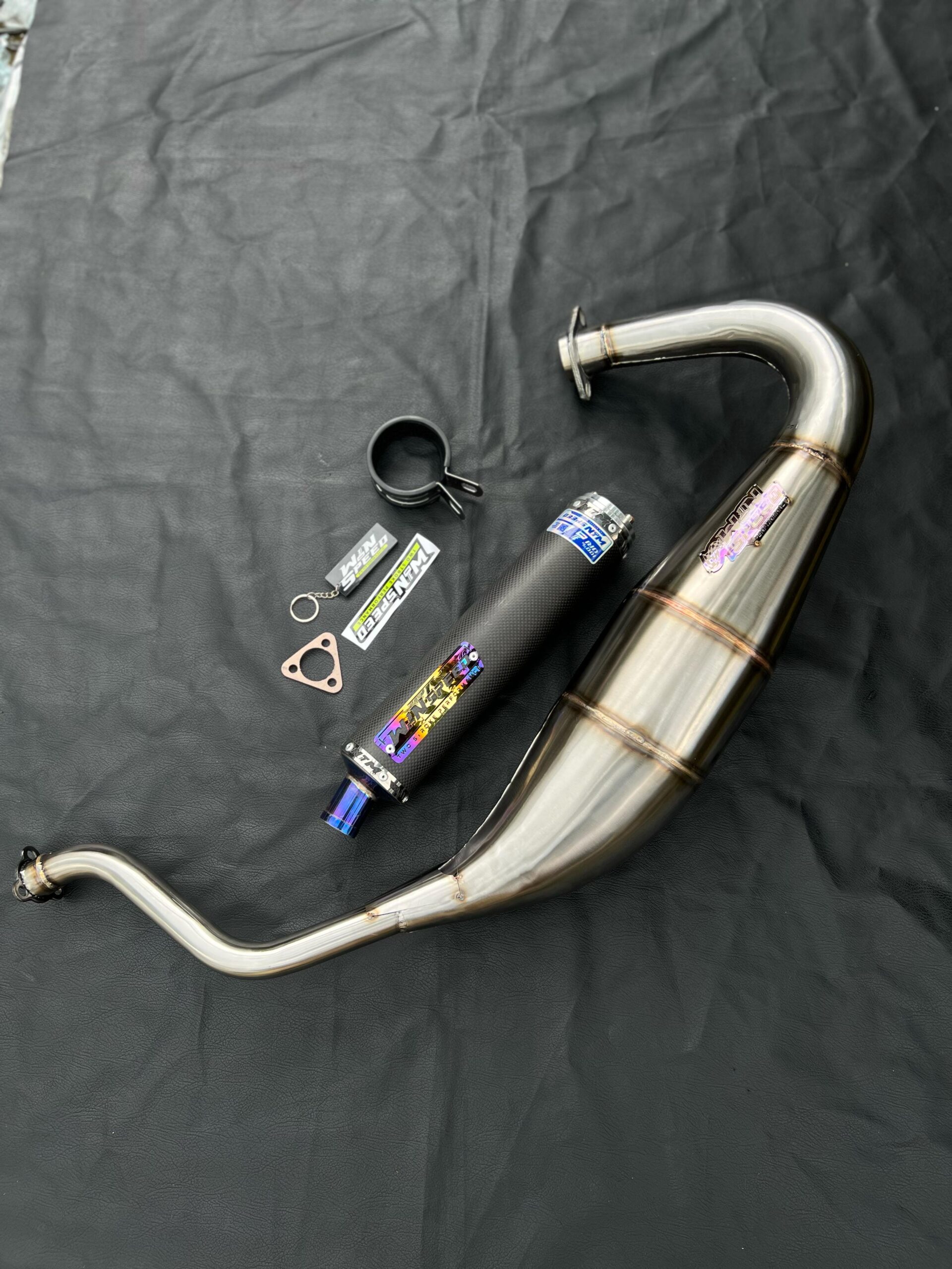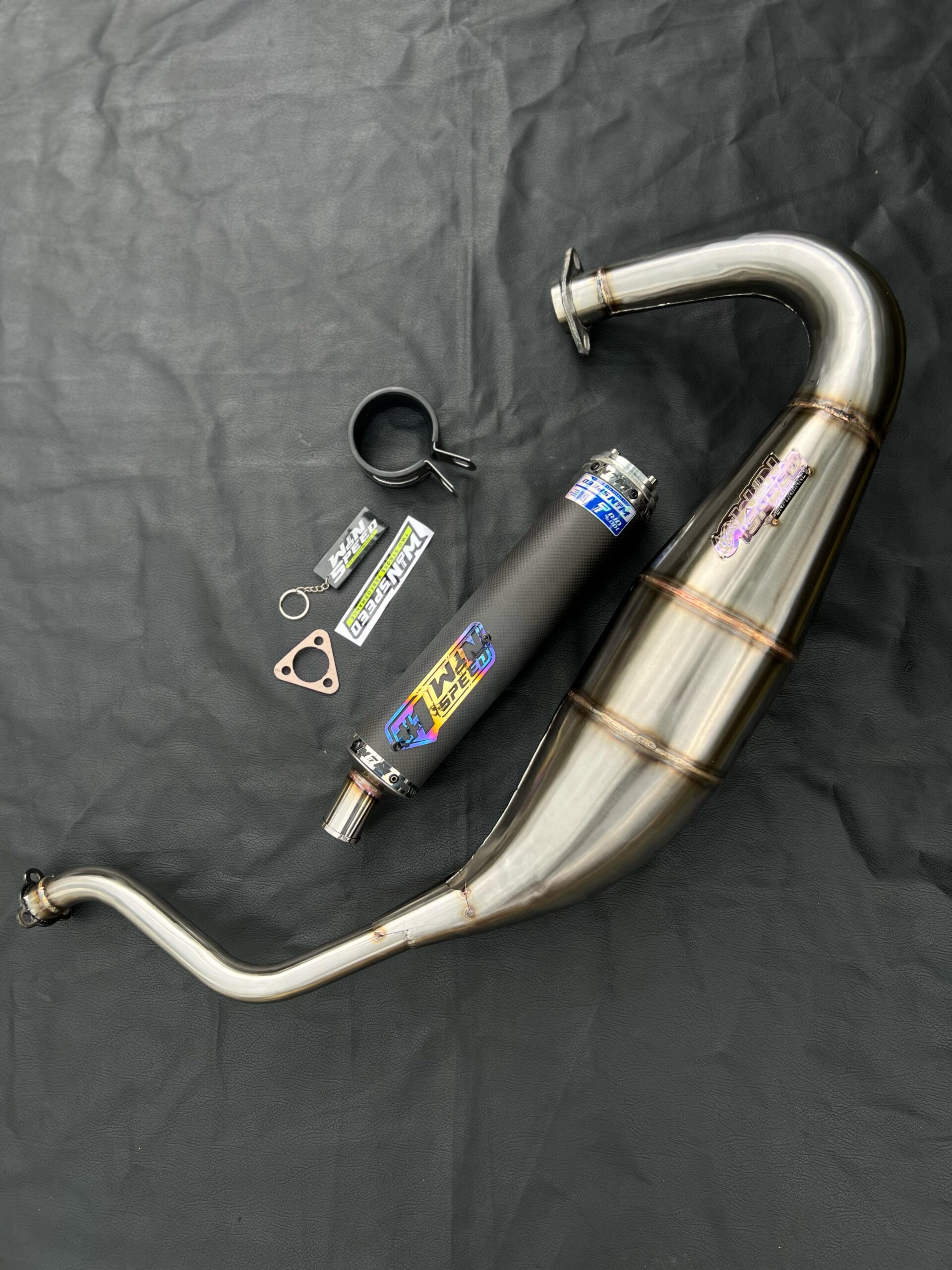 Winspeed Performance Kawasaki KR150, KRR150, KRR150ZX, Serpico exhaust chamber is just what is needed to unleash the power suffocated by the stock system. Just by changing the exhaust system huge gains can be made and it is designed for easy fitting with no repositioning of bodywork or rejetting necessary.