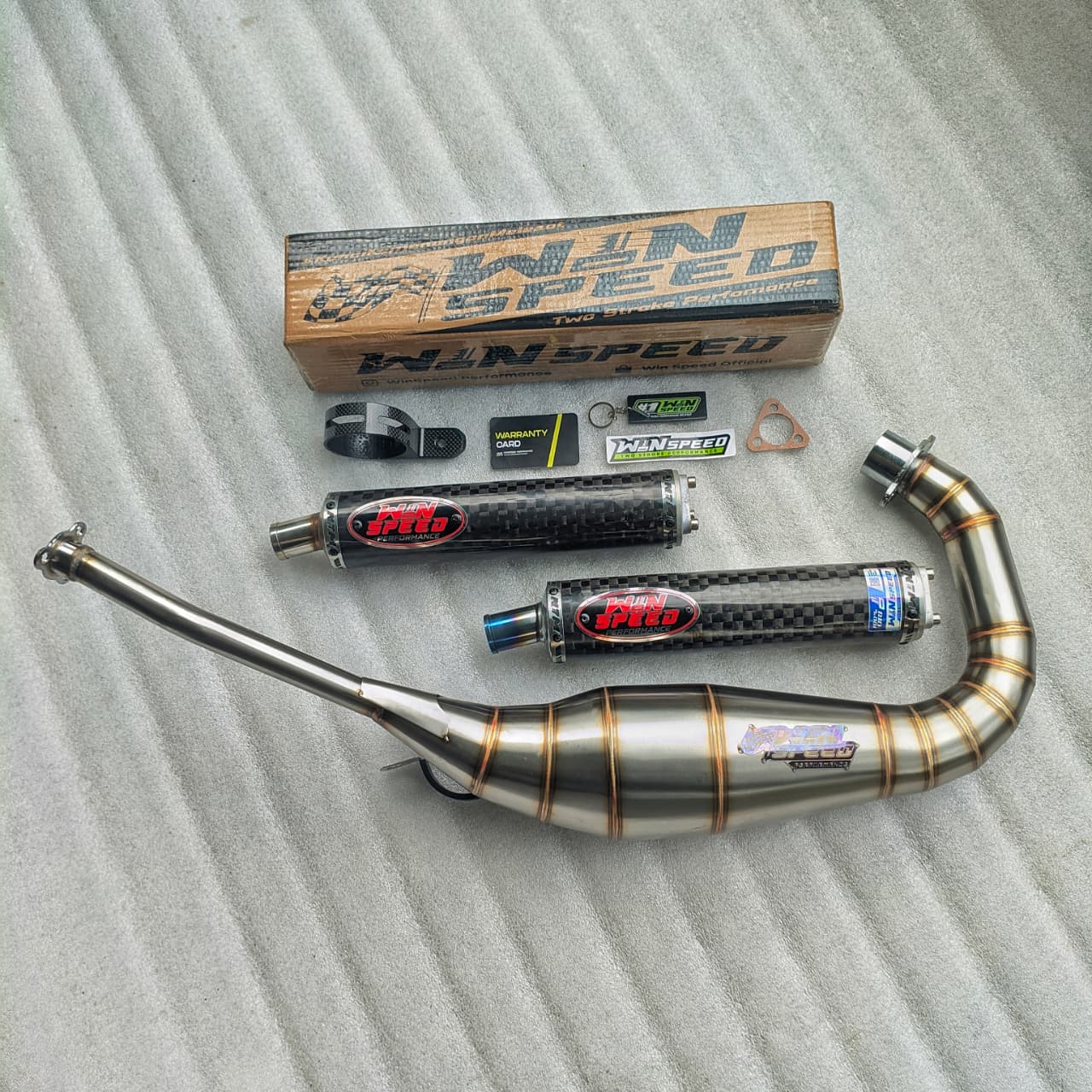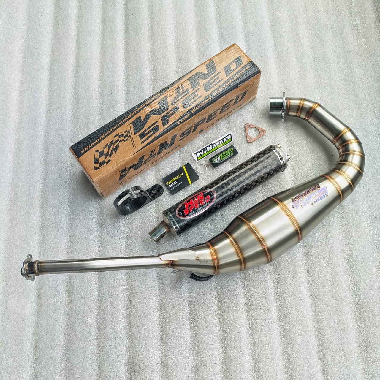 Winspeed Performance Suzuki Satria 2stroke exhaust chamber is just what is needed to unleash the power suffocated by the stock system. Just by changing the exhaust system huge gains can be made and it is designed for easy fitting with no repositioning of bodywork or rejetting necessary.