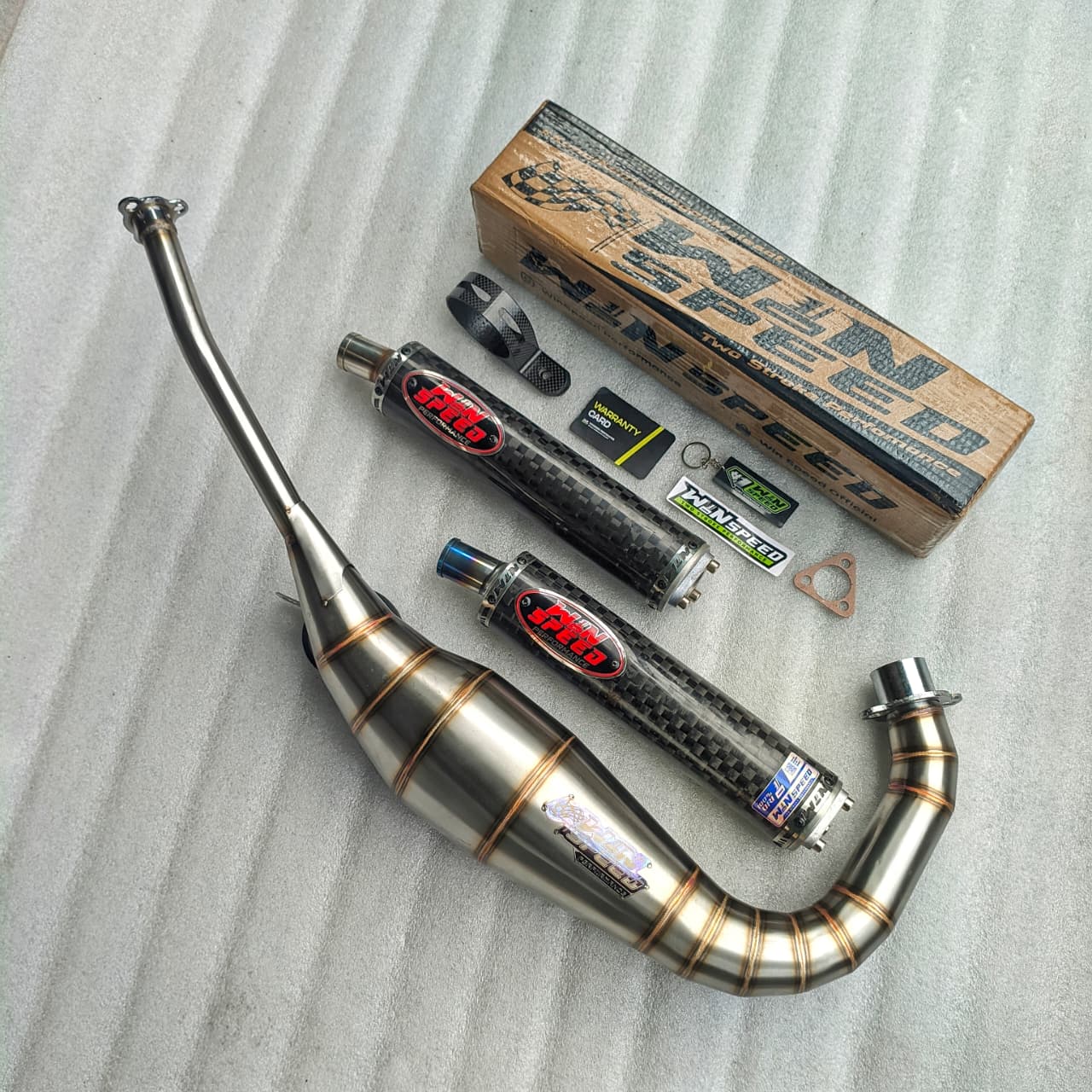 Fullsystem Silencers Carbon Spreadtow Glossy Logo Red, Exhaust Chamber Stainless Cobra Underpass , Satria 2tak Hiu/Lumba/RGV/RGX