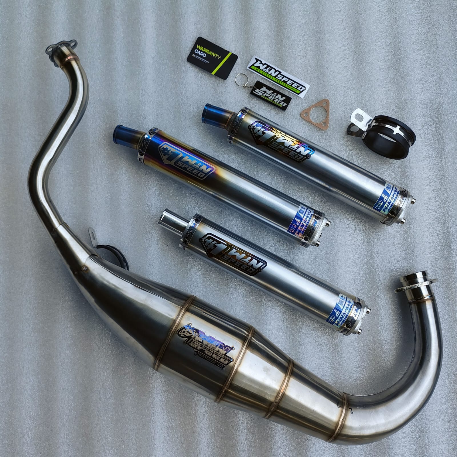 Winspeed Performance Kawasaki KR150, KRR150, KRR150ZX, Serpico exhaust chamber is just what is needed to unleash the power suffocated by the stock system. Just by changing the exhaust system huge gains can be made and it is designed for easy fitting with no repositioning of bodywork or rejetting necessary.