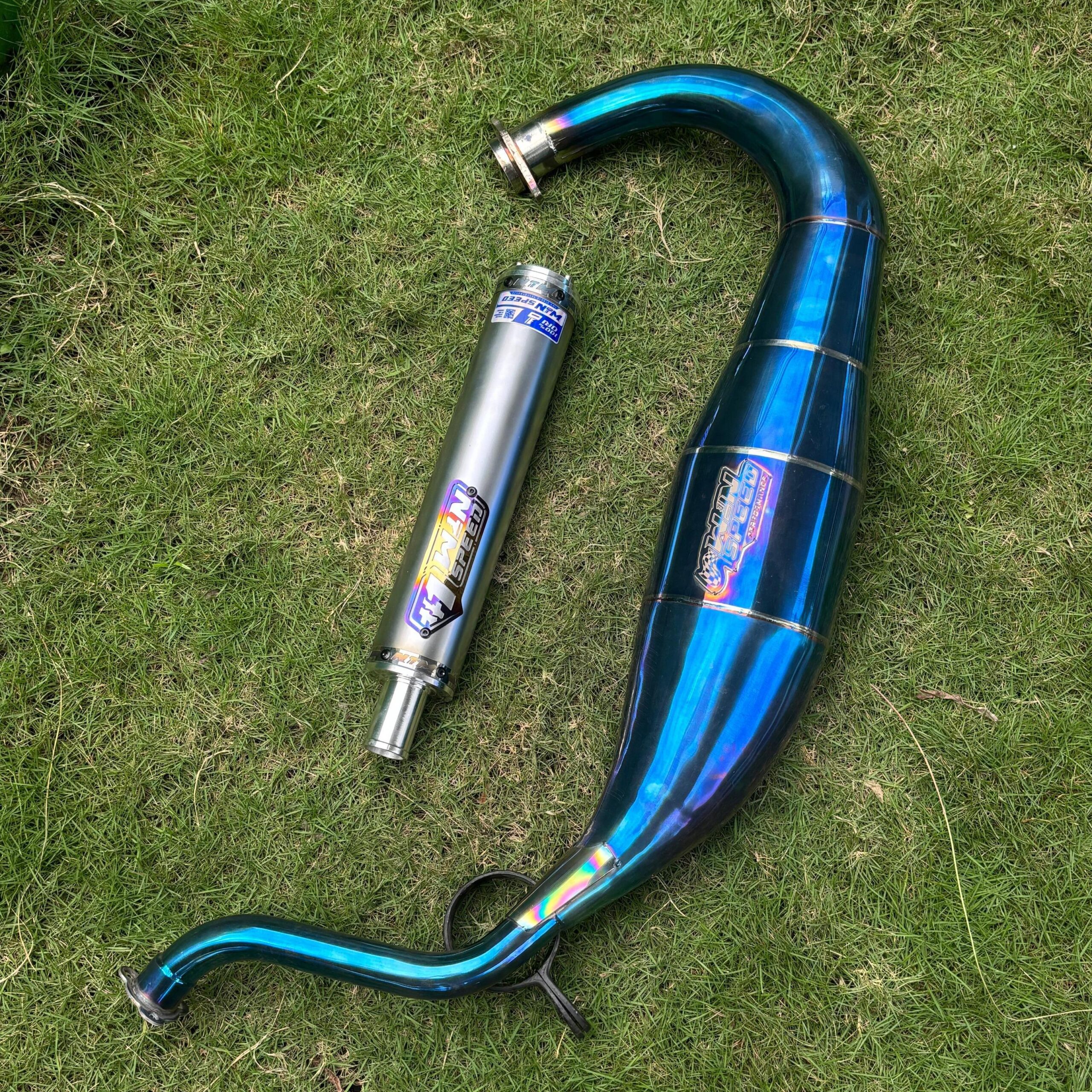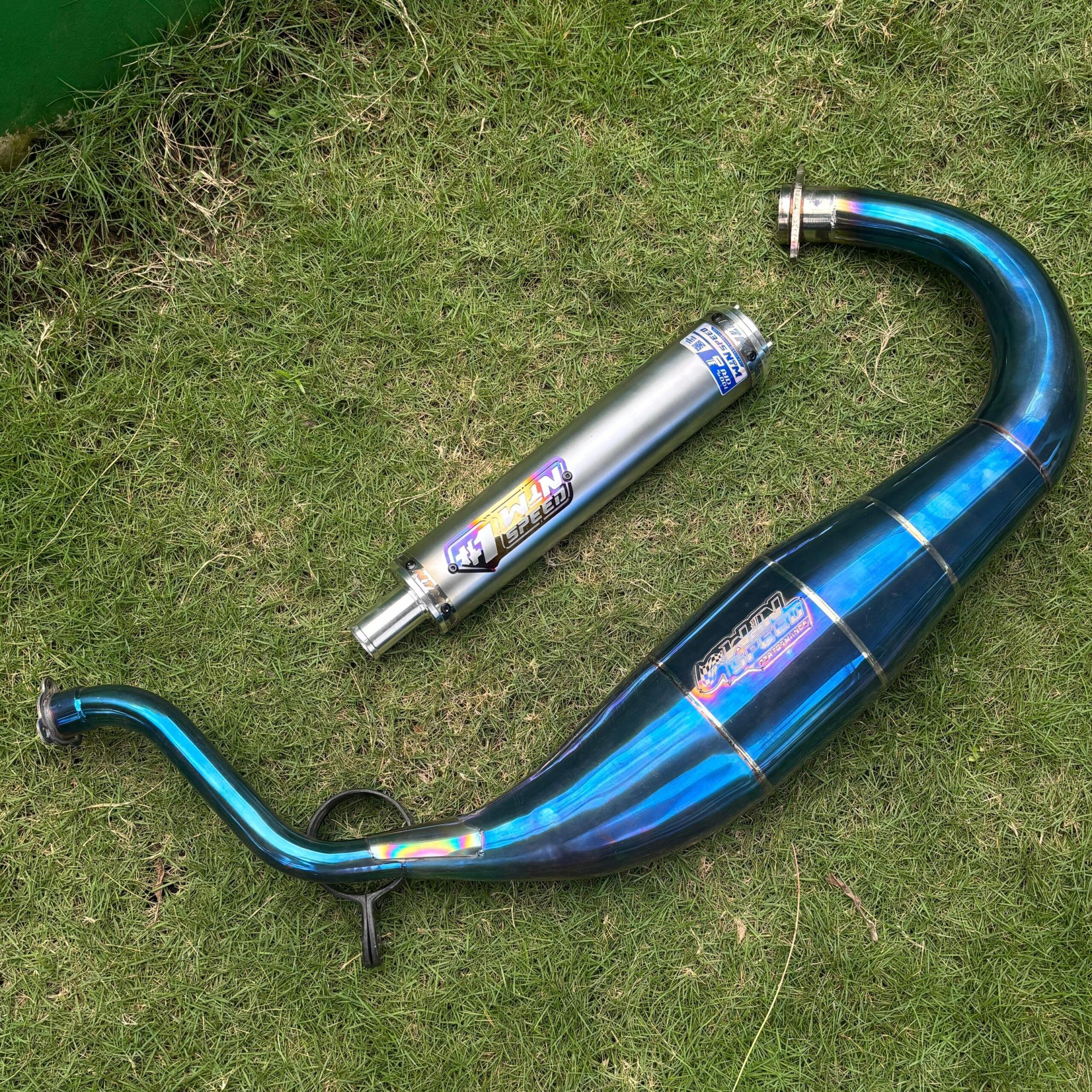 Fullsystem Silencers Stainless Stainless Half Blue Muzzle Straight CNC, Exhaust Chamber Standar/Cobra/Super Cobra, Stainless Press , KR150, KRR150, KRR150ZX, Serpico