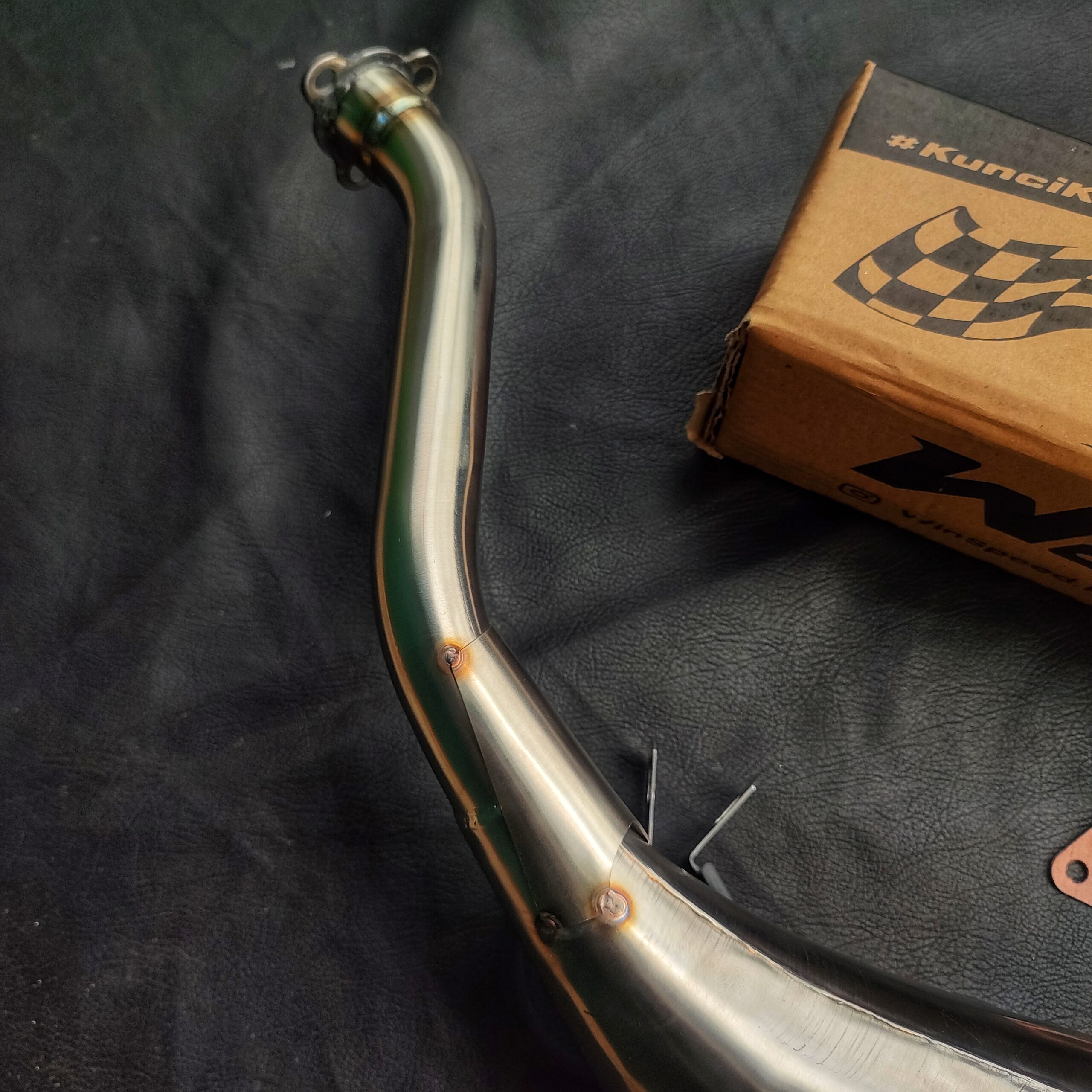 Winspeed Performance Kawasaki KR150, KRR150, KRR150ZX, Serpico exhaust chamber is just what is needed to unleash the power suffocated by the stock system. Just by changing the exhaust system huge gains can be made and it is designed for easy fitting with no repositioning of bodywork or rejetting necessary.