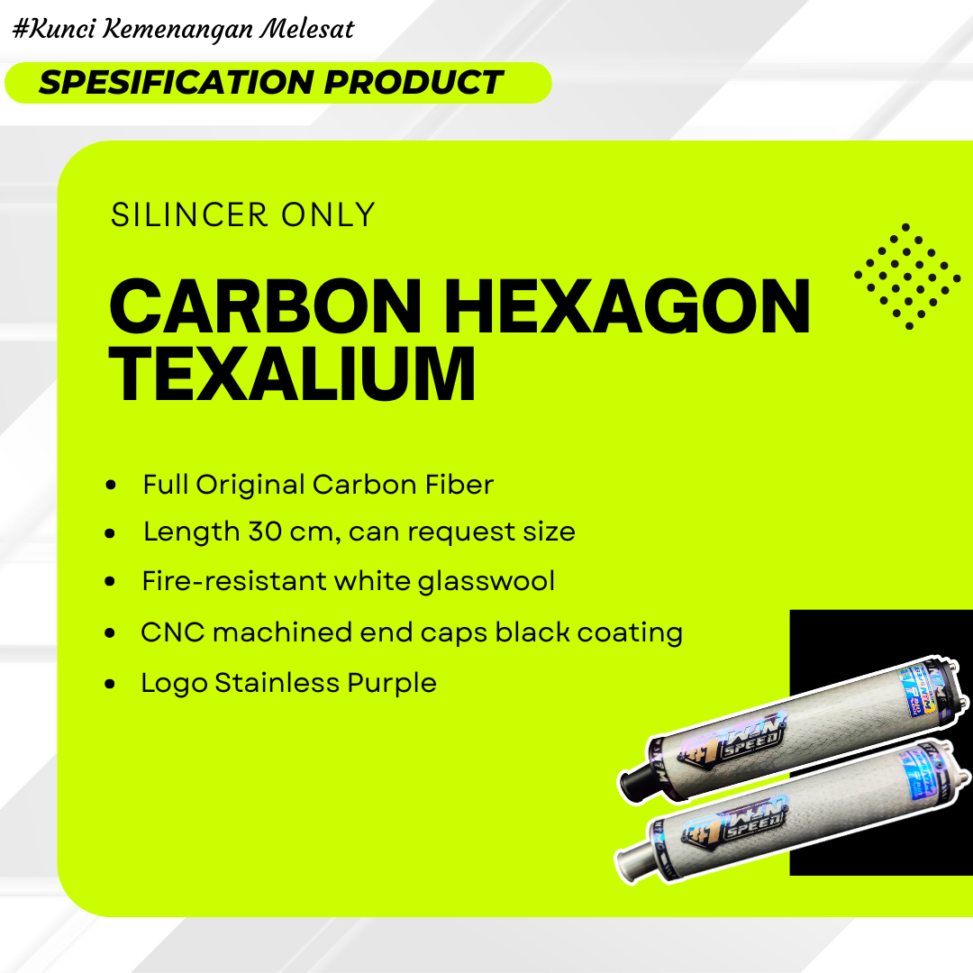 - 100% Real Fiber Carbon Hexagon Texalium GLOSSY ( silencer is made from CNC machined end caps joined by a carbon fiber tube )